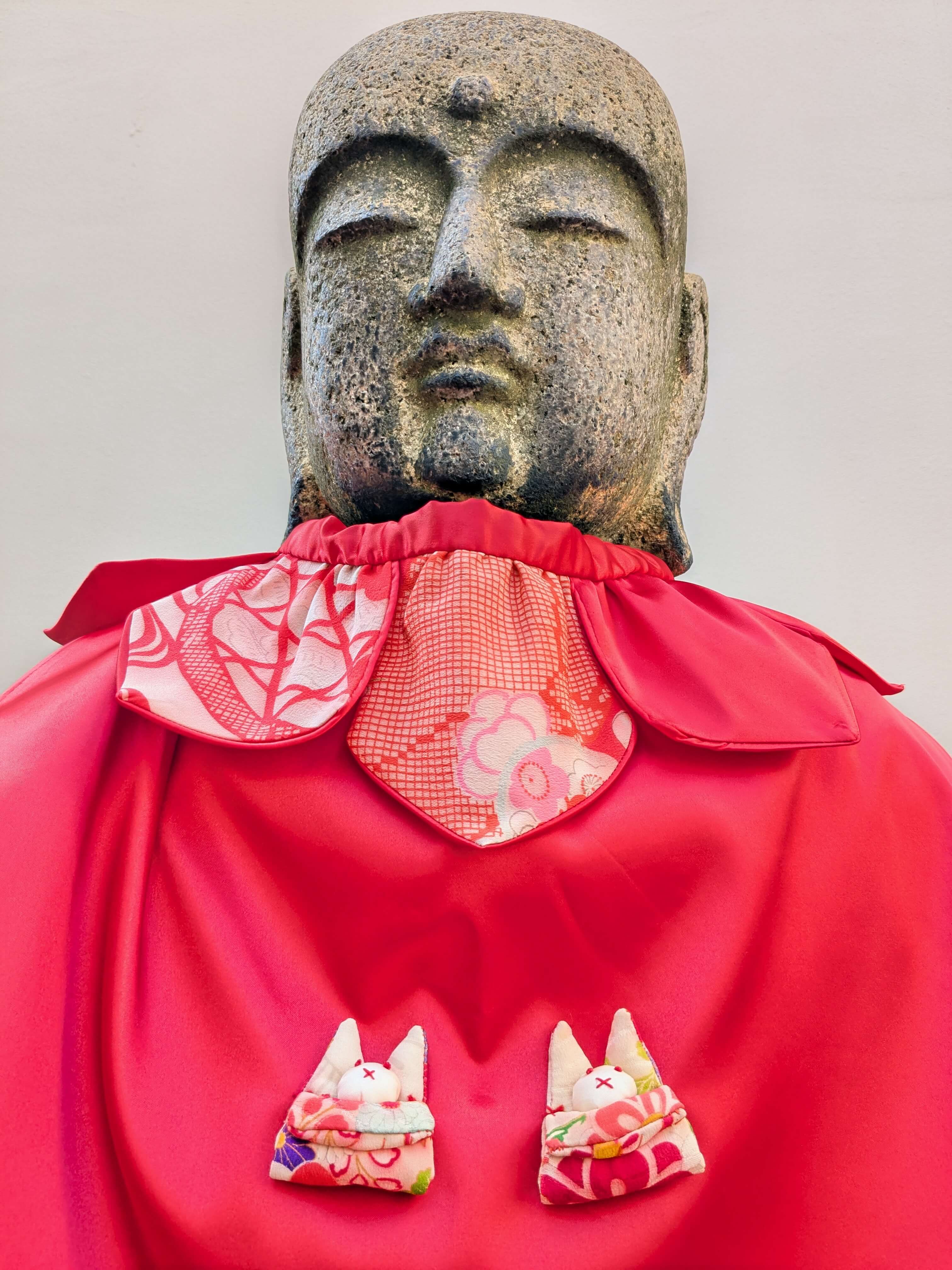 本堂にて個別に読経焼香した後、外の可愛いよだれかけをしたお地蔵様を参拝。